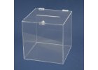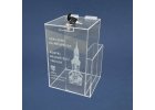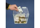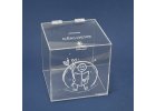 Plexi kasička, pokladnička se zámkem o rozměru 200x200x200 mm s gravírem a kapsou na letáky je vhodná pro Veřejné sbírky, které organizují neziskové organizace, nadace, charity, školy, obce, města, firmy, soukromé osoby, farnosti, vhodné také pro anketní lístky-vzkazy, vizitky či na spoření.