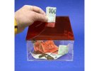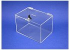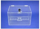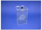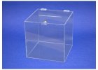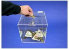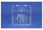 Plexi kasička, pokladnička se zámkem o rozměru 250x250x250 mm s gravírem je vhodná pro Veřejné sbírky, které organizují neziskové organizace, nadace, charity, školy, obce, města, firmy, soukromé osoby, farnosti, vhodné také pro anketní lístky-vzkazy, vizitky či na spoření.